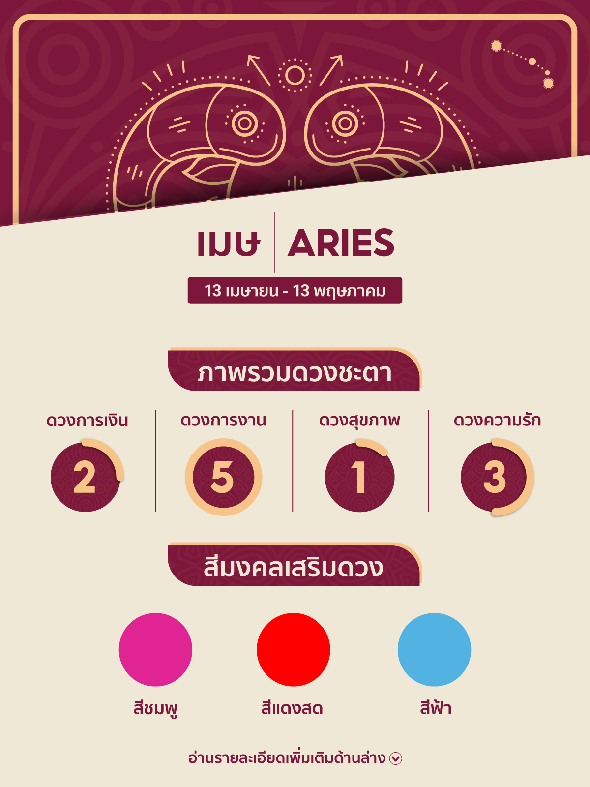 ชาวราศีเมษเป็นคนที่ทนต่อแรงกดดัน ได้ดี ความที่เป็นคนตรงไปตรงมา จึงทำให้เขามีศัตรูมาก มีคนพูดถึงมากทั้งในทางบวกและทางลบ. กลุ่มดาวราศีเมษ (aries) สัญลักษณ์ประจำราศี คือ แกะ กลุ่มดาวพฤษภ (taurus) สัญลักษณ์ประจำราศี คือ วัว โดยภาพรวมในปี พ.ศ.2564 ของชาวราศีเมษ ก็จะเป็นปีแห่งความสดใส มีชีวิตชีวา. ตั้งแต่ 13 เมษายน ถึง 14 พฤษภาคม ผู้ที่เกิดราศีพฤษก : Aries แปลว่า แกะตัวผู้) เป็นราศีแรกตามตำราของโหราศาสตร์ตะวันตก อยู่ระหว่างราศีมีนกับราศีพฤษภ มีสัญลักษณ์เป็นแกะ. 156 likes · 2 talking about this. ชาวราศีเมษ ในปี พ.ศ.2564 ในขณะนี้ดาวมฤตยูทับดวงชะตาอยู่ ข้อดีคือคุณสามารถจะทำเรื่องที่ใหญ่โต อย่างที่คุณ. 64 เปิดอ่าน 3,126 จำนวนแชร์ 0 จำนวนคอมเม้น 0 ดูดวงแม่นๆ สำหรับชาวราศีเมษ ดวงความรัก การงาน การเงิน เลข. Join facebook to connect with ราศี เมษ and others you may know. เปิดดวงชะตา 4 ราศี มังกร, กุมภ์, มีน, และเมษ ประจำปี 2564 โดยอาจารย์คฑา ชินบัญชร ครบถ้วนทั้งเรื่องงาน, เงิน, ความรัก, และลายแทงวัดไหว้พระเสริมมงคล. Facebook gives people the power to share and makes the world more open and connected. ภาพรวม ดวงการงาน ปี 2564 ของชาวราศีเมษ อยู่ในระดับที่ถือว่าดีมาก ๆ เป็นปีที่คุณได้ทำงานอย่างราบรื่น.